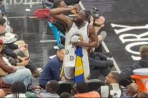 比赛中几名老鹰队球迷不停地高喊着:“追梦真烂!追梦真烂!”作为回应,追梦径直走向替补席,眯起双眼——似乎是在寻找那些根本就不在那里的亚特兰大老鹰队总冠军旗帜。