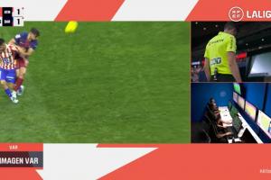 马竞vs巴萨一役:皮球明显处于双方争抢状态,主裁判最初红牌判罚正确,VAR本不应介入。VAR回看建议导致了错误改判,主裁判应坚持原判。