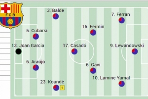 阿斯预测巴萨首发:费兰、莱万、亚马尔三叉戟,加维、卡萨多在列