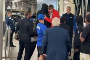 下一篇: 勒布朗·詹姆斯和库珀·弗拉格在勒布朗离开球场前拥抱...